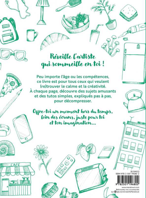 Peu importe l'âge ou les compétences, ce livre est pour tous ceux qui veulent (re)trouver le calme et la créativité. A chaque page, découvre des sujets amusants et des tutos simples, expliqués pas à pas, pour décompresser.