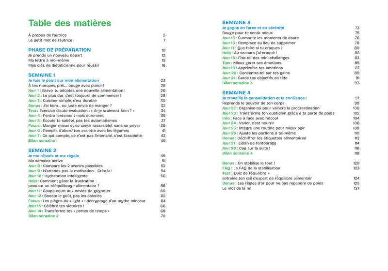 - Un rééquilibrage alimentaire avec plus de 50 recettes ;