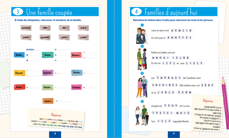 codées, etc. et révisez le vocabulaire de la famille, des sentiments, des vêtements, de la santé, des sports, du logement, de la restauration, du travail, des voyages, des arts…