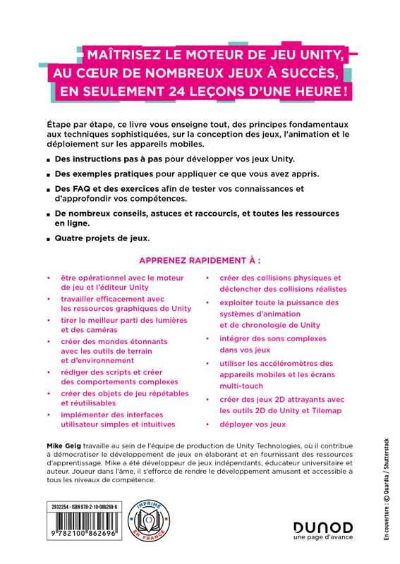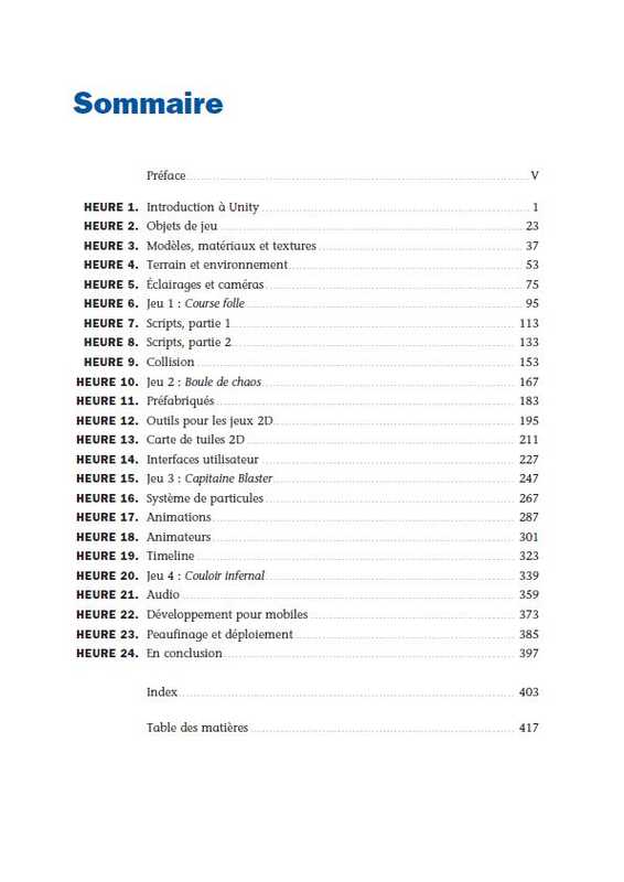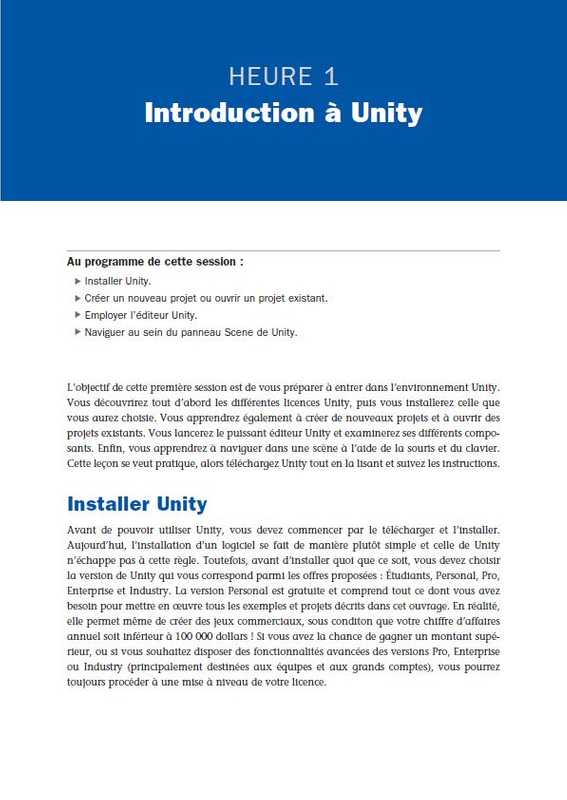 - Des instructions pas à pas pour développer vos jeux Unity.