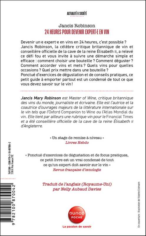 Devenir un expert en vin en 24 heures, c’est possible ? Jancis Robinson, la célèbre critique britannique de vins et anienne conseillère officielle de la cave de la reine Élisabeth II, a relevé ce défi fou et vous invite à suivre une démarche simple et efficace :