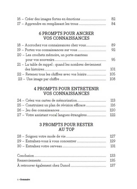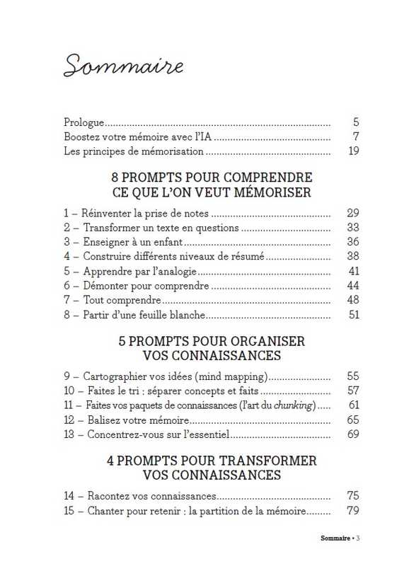Pour vous lancer, il suffit d’utiliser des prompts, ces requêtes spécifiques à destination de l’IA. Ils vous permettront de générer des histoires mémorables pour retenir n’importe quelle information ou encore d’adapter vos séries de chiffres en de petits haïkus personnalisés et faciles à retenir. Et pour vous accompagner efficacement dans votre volonté de booster votre mémoire, les prompts sont classés par catégorie : comprendre ce que l’on veut mémoriser, organiser ses connaissances ou encore apprendre à les ancrer.