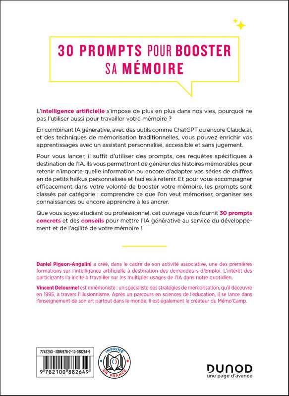 Que vous soyez étudiant ou professionnel, cet ouvrage vous fournit 30 prompts concrets et des conseils pour mettre l’IA générative au service du développement et de l’agilité de votre mémoire !