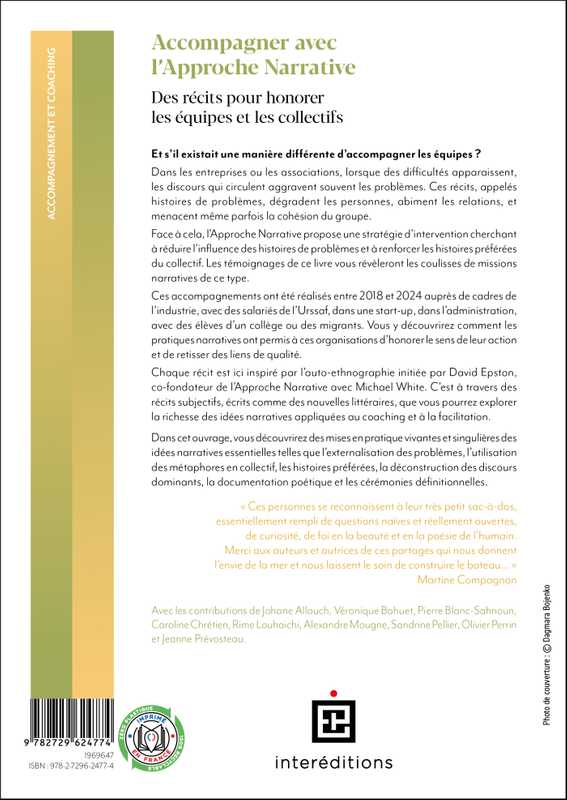 Face à cela, l’Approche Narrative propose une stratégie d’intervention cherchant à réduire l’influence des histoires de problèmes et à renforcer les histoires préférées du collectif. Les témoignages de ce livre vous révèleront les coulisses de missions narratives de ce type.