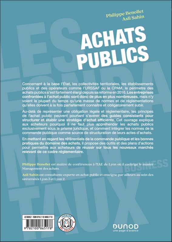 Au-delà de représenter une obligation légale et réglementaire, les principes de l’achat public peuvent pourtant s'avérer des guides consistants pour structurer et établir une stratégie d'achat efficiente. Cet ouvrage explique aux acheteurs pourquoi il ne faut plus appréhender les achats publics exclusivement sous le prisme juridique, et comment intégrer les normes de la commande publique comme source de structuration de leurs actes d'achats.