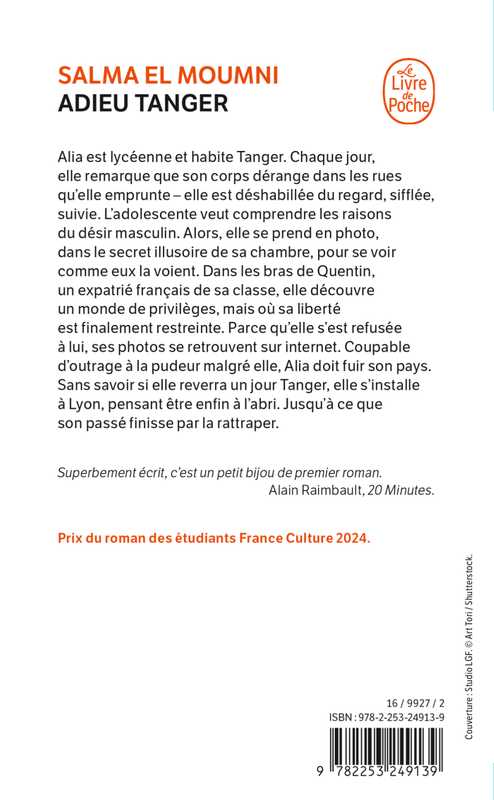 Alia est lycéenne et habite Tanger. Chaque jour, elle remarque que son corps dérange dans les rues qu’elle emprunte – elle est déshabillée du regard, sifflée, suivie. Ses parents croient la protéger en lui conseillant d’être plus discrète, or l’adolescente refuse cette injonction à l’invisibilité et veut comprendre les raisons du désir masculin. Alors, elle se prend en photo, dans le secret illusoire de sa chambre. Dans les bras de Quentin, un expatrié français de sa classe, elle découvre un monde de privilèges, mais où sa liberté est finalement restreinte. Parce qu’elle s’est refusée à lui, ses photos se retrouvent sur Internet. Coupable d’outrage à la pudeur malgré elle, Alia doit fuir son pays. Sans savoir si elle reverra un jour Tanger, elle s’installe à Lyon, pensant être enfin à l’abri. Jusqu’à ce que son passé finisse par la rattraper.