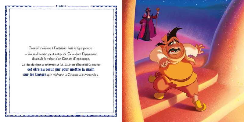 Toute l’histoire du film Aladdin racontée dans un bel album, pour un moment de lecture à partager entre parents et enfants.