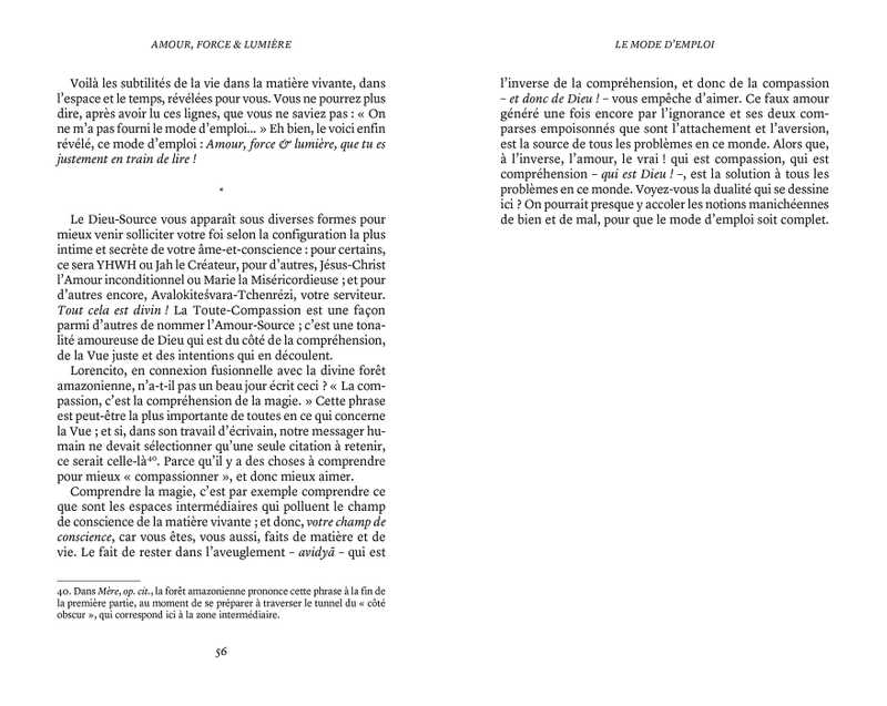 Dans ce deuxième tome d’Amour, force & lumière, c’est au tour du bouddha de la compassion, Avalokitevara-Tchenrézi, de prendre la parole pour délivrer un enseignement magistral sur la Loi divine et ce que signifie « être spirituel ». Du Monde d’en haut aux espaces de Toute-Lumière, cette traversée aux confins des réalités offre un trésor d’anecdotes, de fulgurances et de prises de conscience. Le moment de la grande clarification de l’âme est arrivé, et les esprits alliés de l’humanité s’en donnent à coeur joie.