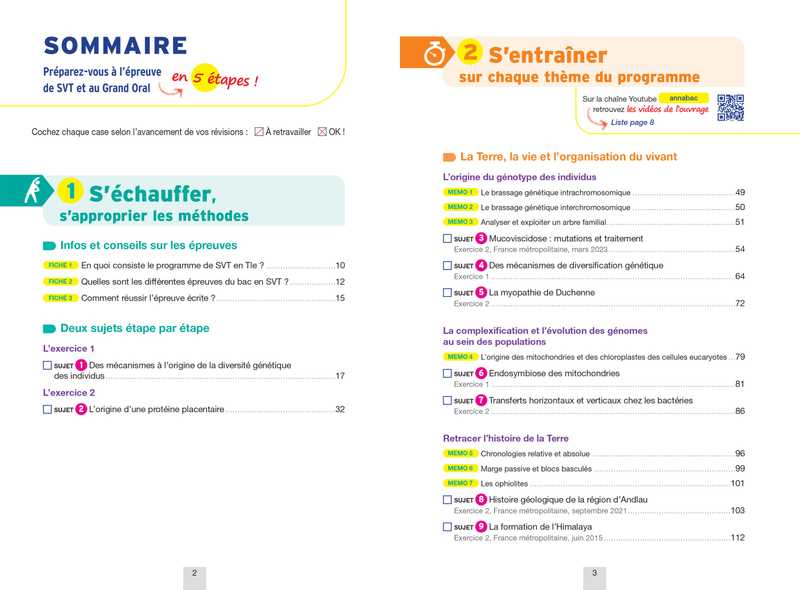 Des fiches mémo pour réviser l’essentiel et 28 sujets guidés, qui couvrent l’ensemble du programme de spécialité en SVT.