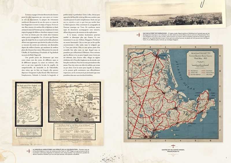 Grâce aux cartes, plans, relevés, croquis et iconographies compilés par la prestigieuse Université Miskatonic, découvrez la face cachée des villes de Dunwich, Arkham, Providence, Kingsport et Innsmouth. Revivez l'expédition en Antarctique des Pr Dyer et Lake.