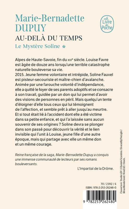 Mais une mystérieuse personne tente d’éloigner d’elle tous ceux qui lui témoignent de l’affection, et semble prête à aller jusqu’au meurtre. Et si tout était lié à l’accident dont elle a été victime dans sa petite enfance, et qui l’a laissée sans aucun souvenir de ses origines ? Soline devra se plonger dans son passé pour découvrir la vérité et le lien invisible qui l’unit à Louise, jeune fille d’une autre époque, mais qui partage avec elle un même don et un même courage.