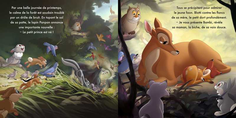 Les meilleurs moments du film Bambi, dans une histoire illustrée à lire en 15 minutes, pour un moment de lecture à partager entre parents et enfants.