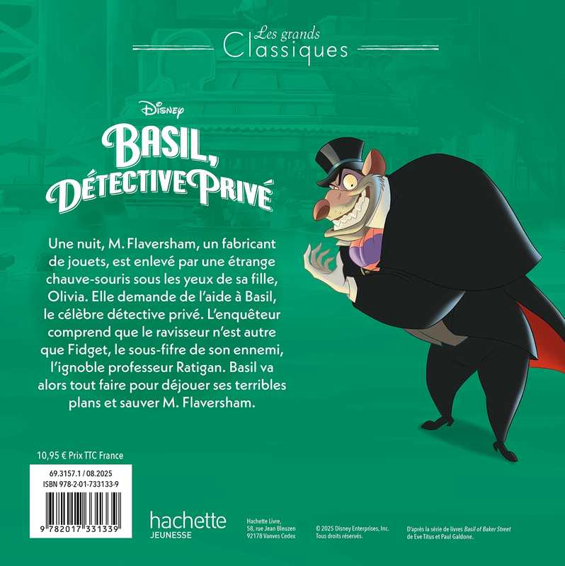 L'histoire : Une nuit, M. Flaversham, un fabricant de jouets, est enlevé par une étrange chauve-souris sous les yeux de sa fille, Olivia. Elle demande de l’aide à Basil, le célèbre détective privé. L’enquêteur comprend que le ravisseur n’est autre que Fidget, le sous-fifre de son ennemi, l’ignoble professeur Ratigan. Basil va alors tout faire pour déjouer ses terribles plans et sauver M. Flaversham.