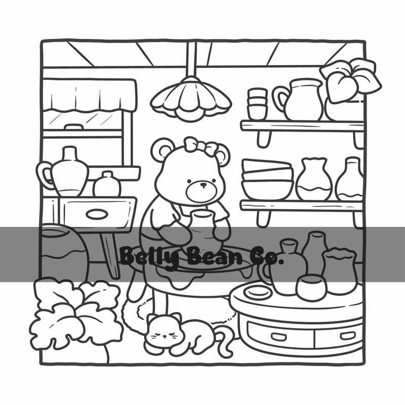 Atelier de peinture, séance de poterie entre amis et tricot sous un bon plaid, découvrez 40 illustrations pleines de douceur. Sortez vos feutres ou crayons et entrez dans l’univers tendre et cosy de Belly Bean Co.