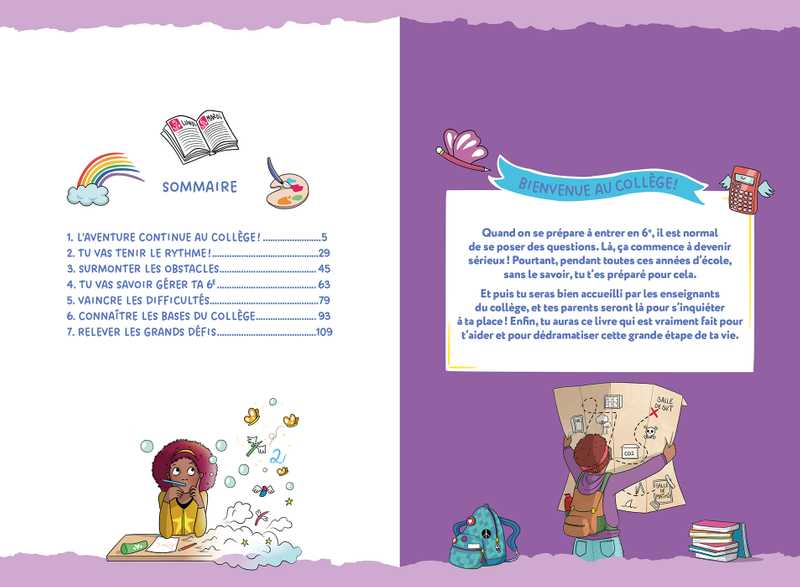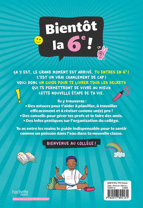 Un guide pratique et indispensable de 128 pages pour aborder avec sérénité et préparer sa rentrée en 6ème et faire face à toutes les situations. De nombreux trucs et astuces utiles pour bien s'organiser, des conseils pour dialoguer avec ses professeurs, échanger avec ses parents et ses copains. Des infos pratiques sur le bon fonctionnement du collège et de nombreux secrets pour réussir à surmonter ce nouveau cap !