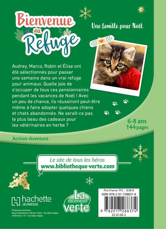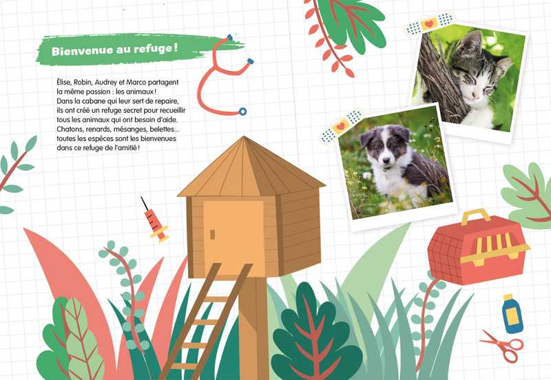 Résumé : Audrey, Marco, Robin et Élise ont été sélectionnés pour passer une semaine dans un vrai refuge pour animaux. Quelle joie de s’occuper de tous ces pensionnaires pendant les vacances de Noël ! Avec un peu de chance, ils réussiront peut-être même à faire adopter quelques chiens et chats abandonnés. Ne serait-ce pas le plus beau des cadeaux pour nos vétérinaires en herbe ?