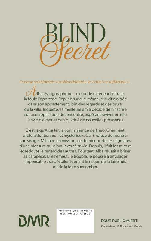 C’est là qu’Alba fait la connaissance de Théo. Charmant, drôle, attentionné… et mystérieux. Car il refuse de montrer son visage. Militaire en mission, ce dernier porte les stigmates d’une blessure qui a bouleversé sa vie. Depuis, il fuit les miroirs et redoute le regard des autres. Pourtant, Alba réussit à briser sa carapace. Elle l’émeut, le trouble, le pousse à envisager l’impensable : se dévoiler. Prenant le risque de la faire fuir… ou de la faire succomber.