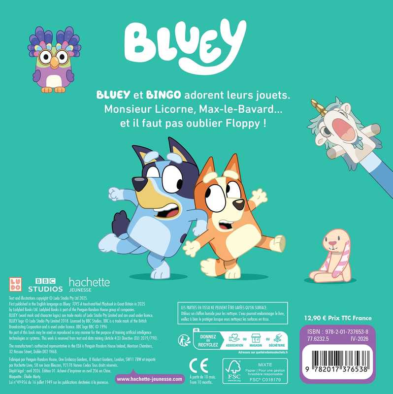 BLUEY et BINGO adorent leurs jouets. Max-le-Bavard, Monsieur Licorne... Oh ! Et faut pas oublier Floppy !