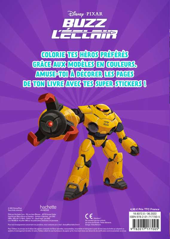 Un cahier d’activités pour s’amuser à colorier les personnages du film Buzz L'Éclair, et à décorer ses affaires avec les stickers !