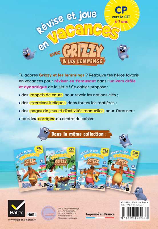 Révise l’essentiel du programme de CP pour être prêt à entrer en CE1 avec ton dessin animé préféré : Grizzy et les lemmings !