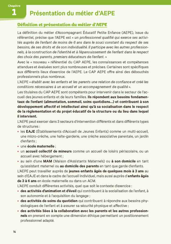 Ce manuel dédié au CAP accompagnant éducatif petite enfance (AEPE) a pour objectif de donner toutes les clés aux candidats afin qu'ils valident les trois épreuves professionnelles :