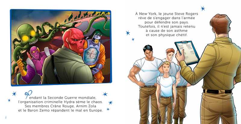 Histoire : Steve Rogers est doté d’un grand courage et d’un patriotisme sans faille. C’est pour cela que, malgré son corps chétif, il souhaite s’engager dans l’armée et défendre son pays. Un jour, il est sélectionné pour devenir un Super Soldat et il prend le nom de Captain America !