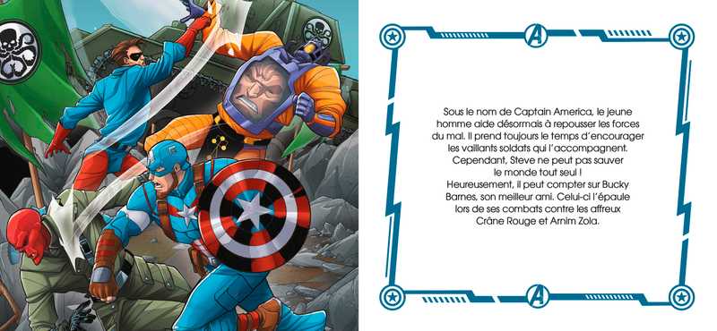 – Un petit album illustré de 48 pages pour découvrir les aventures de Captain America.