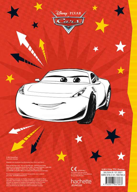 Un grand livre contenant de 60 coloriages avec les voitures légendaires de Cars !