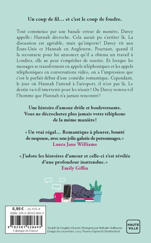 Tout commence par une banale erreur de numéro. Davey appelle : Hannah décroche. Cela aurait pu s'arrêter là. La discussion est agréable, mais qu'importe ! Davey vit aux États-Unis et Hannah en Angleterre. Pourtant, quand il la recontacte pour lui annoncer qu'il a obtenu un travail à Londres, elle ne peut s'empêcher de sourire. Et lorsque les messages se transforment en appels téléphoniques et les appels téléphoniques en conversations vidéo, on a l'impression que c'est le parfait début d'une comédie romantique. Cependant, le jour où Hannah l'attend à l'aéroport, il n'est pas là. Le destin va-t-il intervenir pour les réunir ? Ou Davey restera-t-il l'homme que Hannah n'a jamais rencontré ?