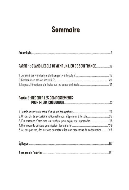 Depuis quelques années, la pédopsychiatre Anne Raynaud reçoit de plus en plus d'enfants dont le comportement à l'école inquiète parents et enseignants. Ils lui parlent de leurs difficultés, de la pression qu'ils subissent, de leurs altercations avec leurs camarades. De toutes ces situations et de tous ces ressentis se dégage une conviction : les conduites inadaptées sont souvent l'expression d'une peur et d'une insécurité émotionnelle.