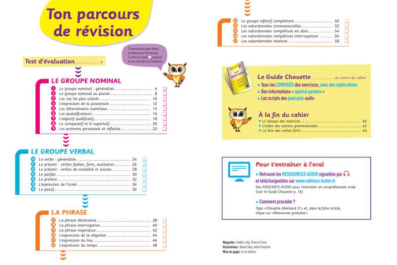 • Pour chaque point clé du programme de grammaire en allemand LV2 3e :