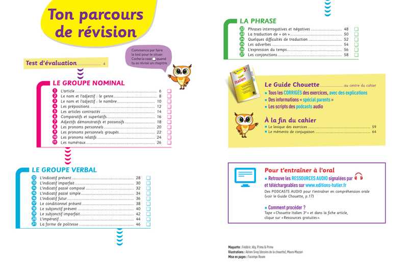 • Pour chaque point clé du programme de grammaire en italien niveau A2/A2+ (3e) :