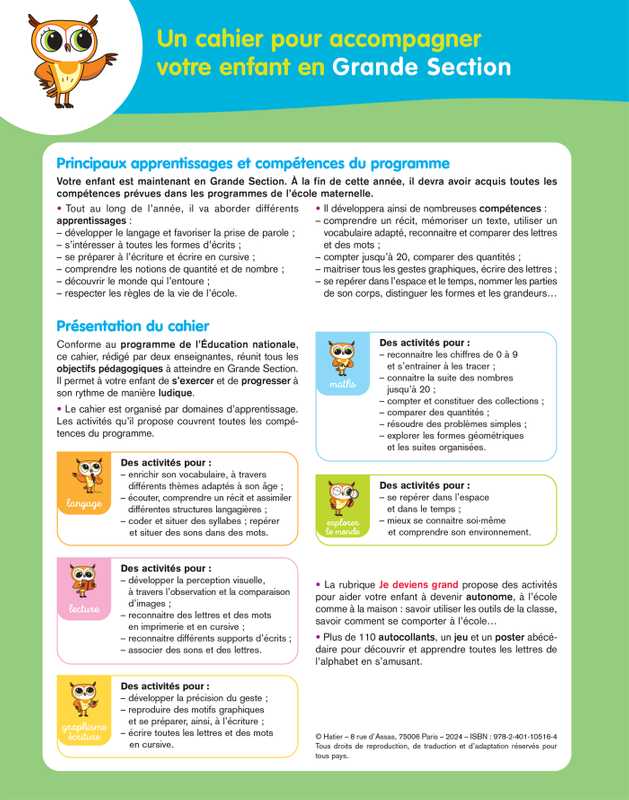Cet ouvrage, conçu par des enseignants, permettra à votre enfant de s’exercer et de progresser en s’amusant durant toute son année de Grande Section de Maternelle et de préparer son entrée en CP.