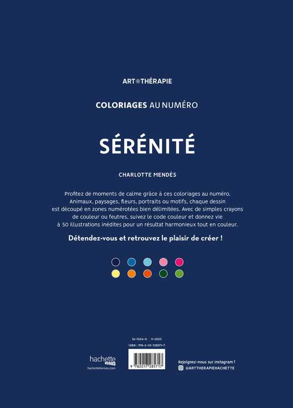 Animaux, paysages, fleurs, portraits ou motifs, chaque dessin est découpé en zones numérotées bien délimitées. Avec de simples crayons de couleur ou feutres, suivez le code couleur et donnez vie à 50 illustrations inédites pour un résultat harmonieux tout en couleur.