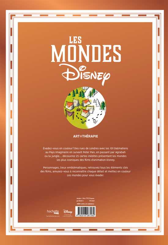 Évade-toi en couleur ! Des rues de Londres avec les 101 Dalmatiens au Pays Imaginaire en suivant Peter Pan, en passant par Agrabah ou la jungle… découvre 25 cartes inédites présentant les mondes les plus iconiques des films d’animation Disney.