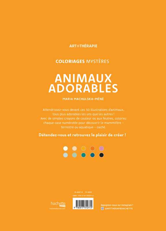 Attendrissez-vous devant ces 50 illustrations d'animaux, tous plus adorables les uns que les autres ! Avec de simples crayons de couleur ou aux feutres, coloriez chaque case numérotée pour découvrir le mammifère - terrestre ou aquatique - caché.