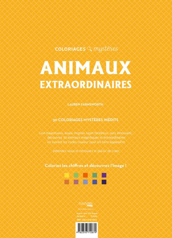 Lion majestueux, koala mignon, lapin facétieux, ours émouvant... découvrez 30 animaux magnifiques et extraordinaires en suivant les codes couleur pour les faire apparaître.