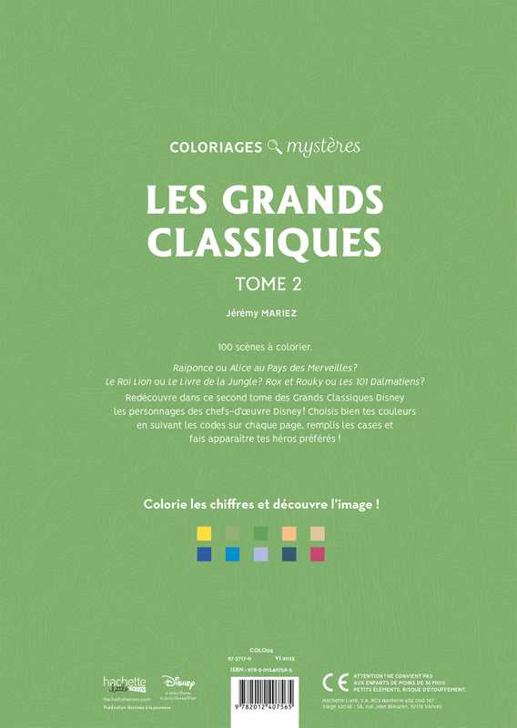 Redécouvre dans ce second tome des Grands Classiques Disney les personnages des chefs-d'oeuvre Disney ! Choisis bien tes couleurs en suivant les codes sur chaque page, remplis les cases et fais apparaître tes héros préférés !