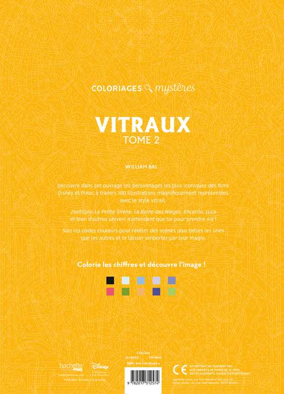 Dans ce nouveau livre de coloriage composés de 100 illustrations inédites nées de l'imagination de William Bal, redécouvre des univers classiques, des Pixar et les dernières sorties Disney dans un style vitrail !