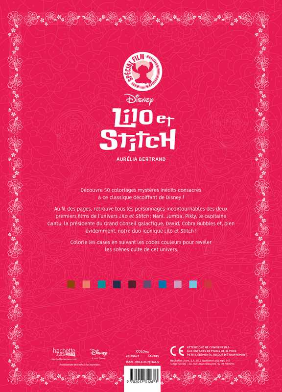 Colorie les cases en suivant les codes couleurs et découvre des scènes légendaires ! Alors, prêt à rejoindre Lilo et Stitch sous le soleil d'Hawaï ?