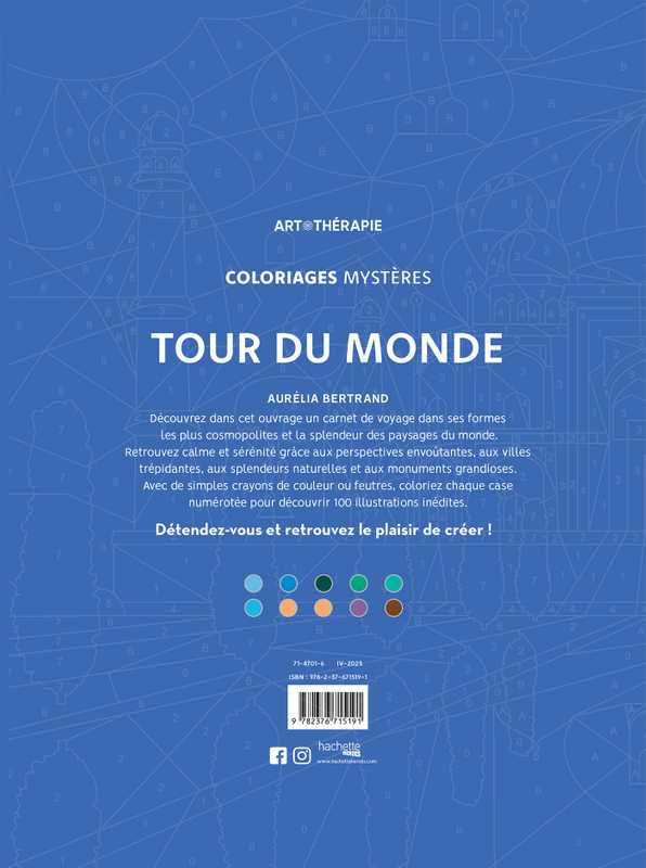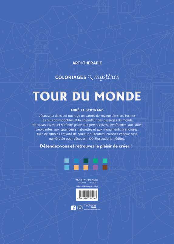 Découvrez dans cet ouvrage un carnet de voyage dans ses formes les plus cosmopolites et la splendeur des paysages du monde. Retrouvez calme et sérénité grâce aux perspectives envoûtantes, aux villes trépidantes, aux splendeurs naturelles et aux monuments grandioses. Avec de simples crayons de couleur ou feutres, coloriez chaque case numérotée pour découvrir 100 illustrations inédites.