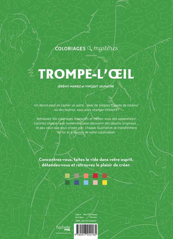 Retrouvez 100 coloriages interactifs et méfiez-vous des apparences ! Coloriez chaque case numérotée pour découvrir des dessins originaux… et pas ceux que vous croyez voir. Chaque illustration se transformera au fur et à mesure de votre colorisation.