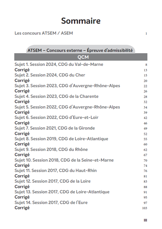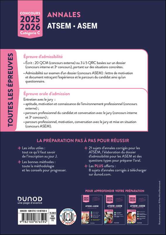 - 21 sujets d'annales corrigés pour les ATSEM, l'élaboration du dossier d'admissibilité pour les ASEM et des questions types pour préparer l'oral.
