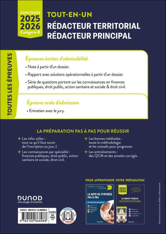 Cet ouvrage s'adresse aux candidats des concours externe, interne et 3e voie de Rédacteur territorial et Rédacteur territorial principal (catégorie B).