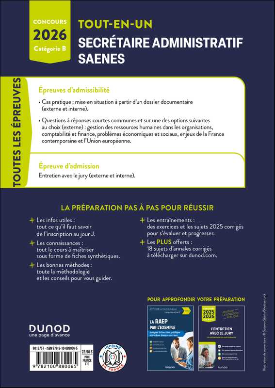 Cet ouvrage prépare les candidats des concours interne ou externe de Secrétaire administratif (SA) et de Secrétaire administratif de l'Éducation nationale (SAENES) de catégorie B.