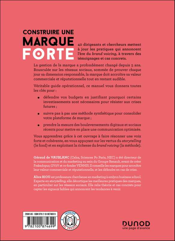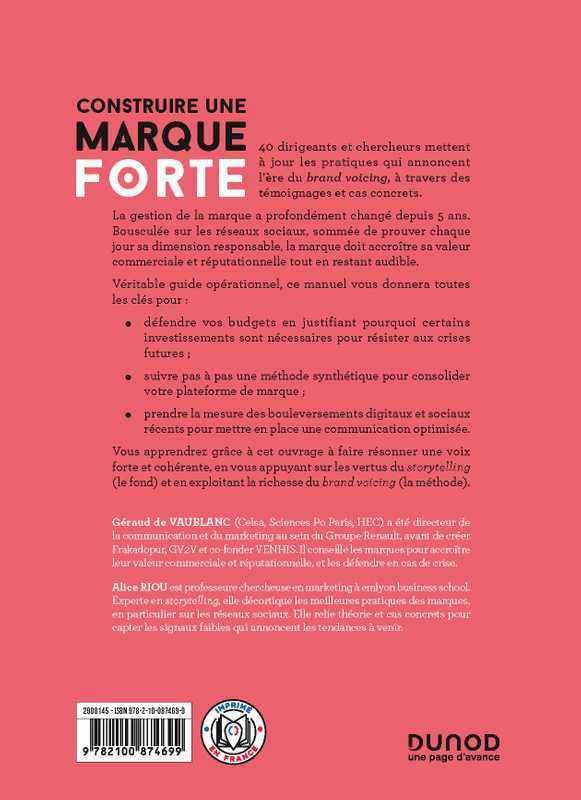 • suivre pas à pas une méthode synthétique pour consolider votre plateforme de marque ;