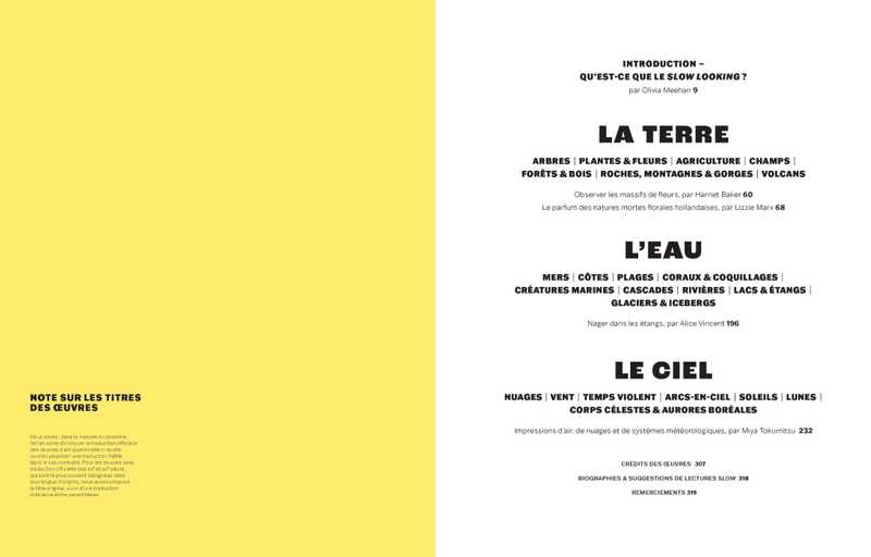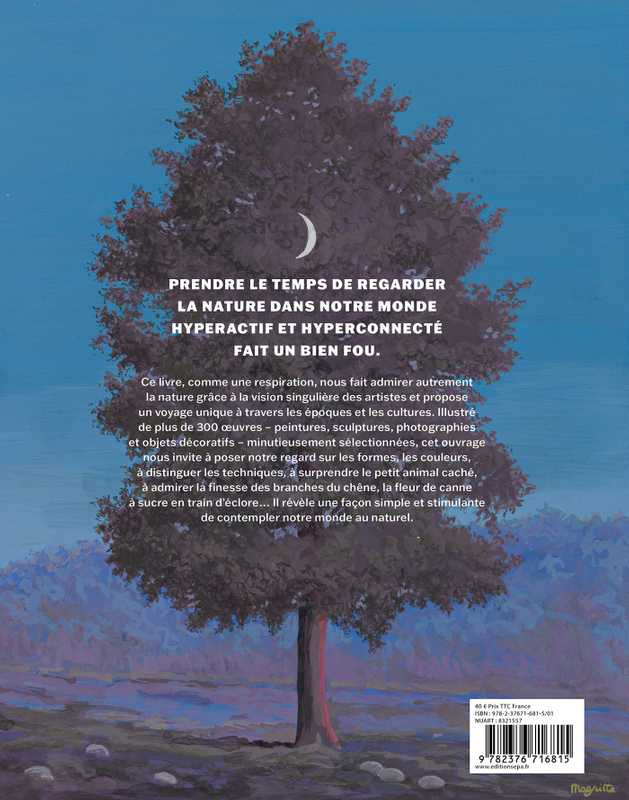 Ce livre, comme une respiration, nous fait admirer autrement la nature grâce à la vision singulière des artistes et propose un voyage unique à travers les époques et les cultures. Illustré de plus de 300 oeuvres - peintures, sculpures, photographies et objets décoratifs - minutieusement sélectionnées, cet ouvrage nous invite à poser notre regard sur les formes, les couleurs, à distinguer les techniques, à surprendre le petit animal caché, à admirer la finesse des branches du chêne, la fleur de canne à sucre en train d'éclore... Il révèle une façon simple et stimulante de contempler notre monde au naturel.