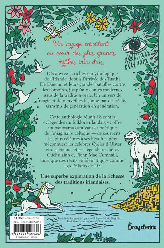 Plongez dans la richesse mythologique de l'Irlande, depuis l'arrivée des Tuatha Dé Danann et leurs grandes batailles contre les Fomoriens, jusqu'aux contes modernes issus de la tradition orale irlandaise. Ce recueil inclut les célèbres Cycles d'Ulster et des Fianna, avec des héros légendaires tels que Cúchulainn et Fionn Mac Cumhaill, ainsi que des récits emblématiques comme Les Enfants de Lir.