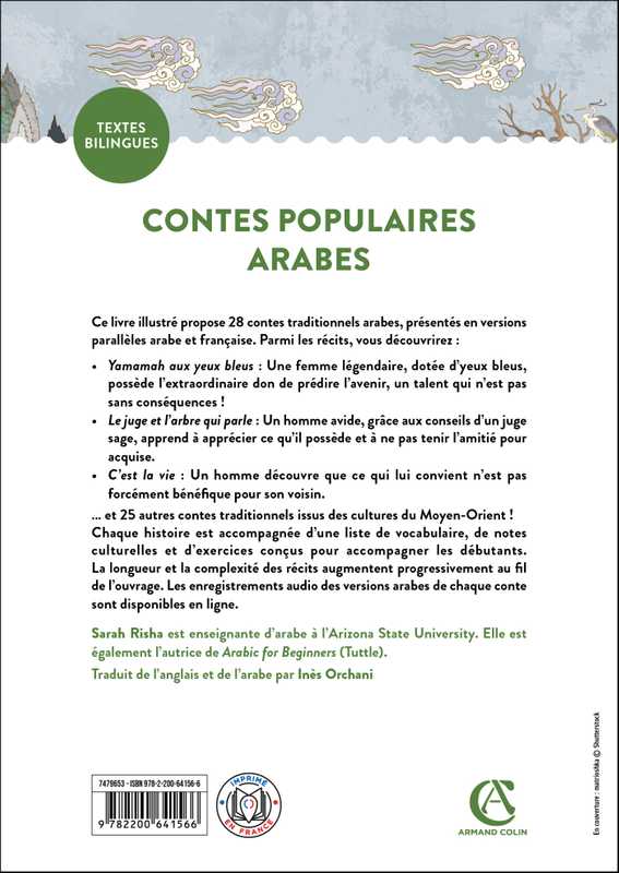 Ce livre propose 28 contes traditionnels arabes, présentés en versions parallèles arabe et française. Parmi les récits, vous découvrirez :