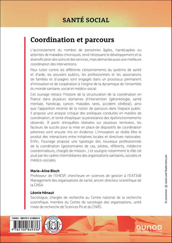 L’accroissement du nombre de personnes âgées, handicapées ou atteintes de maladies chroniques, rend nécessaire le développement et la diversification des soins et des services, mais demande aussi une meilleure coordination des interventions. Pour lutter contre les différents cloisonnements du système de santé et d’aide, les pouvoirs publics, les professionnels et les associations de familles et d’usagers sont engagés dans un processus permanent d’innovation et de coopération à l’origine de la dynamique de l’ensemble du monde sanitaire, social et médico-social. Cet ouvrage retrace l’histoire de la structuration de la coordination en France dans plusieurs domaines d’intervention (gérontologie, santé mentale, handicap, cancer, maladies rares, accident cérébral), ainsi que l’apparition récente de la notion de parcours dans l’espace public. Il propose une analyse critique des politiques conduites en matière de coordination, et tente d’expliquer la persistance des dysfonctionnements observés. À partir d’enquêtes réalisées sur plusieurs territoires, les facteurs de succès pour la mise en place de dispositifs de coordination pérennes sont ensuite mis en évidence. L’innovation se révèle être le produit des interactions entre initiatives locales et directives nationales. Enfin, l’ouvrage propose une typologie des nouveaux professionnels de la coordination (gestionnaires de cas, pilotes, référents, médecins coordonnateurs, chargés de mission…) et souligne notamment le rôle clé joué par les cadres intermédiaires des organisations sanitaires, sociales et médico-sociales.